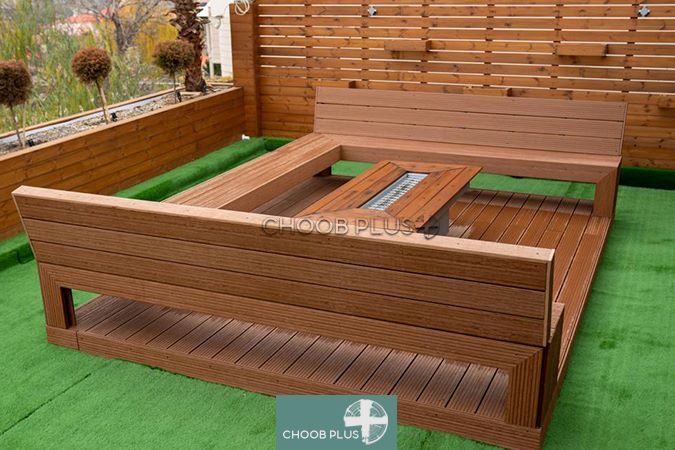 محوطه سازی با مبلمان چوبی فضای باز